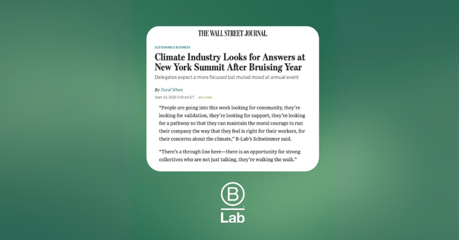 As Climate Week NYC kicks off, the focus shifts from headline-grabbing pledges to building resilient, business-focused coalitions. In a Wall Street Journal interview, B Lab Co-Lead Executive Sarah Schwimmer stressed the need for community and moral courage to drive climate action despite political pushbacks.